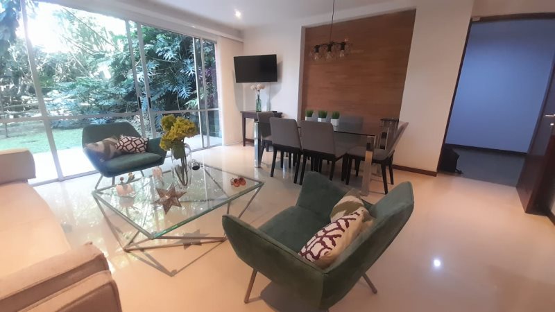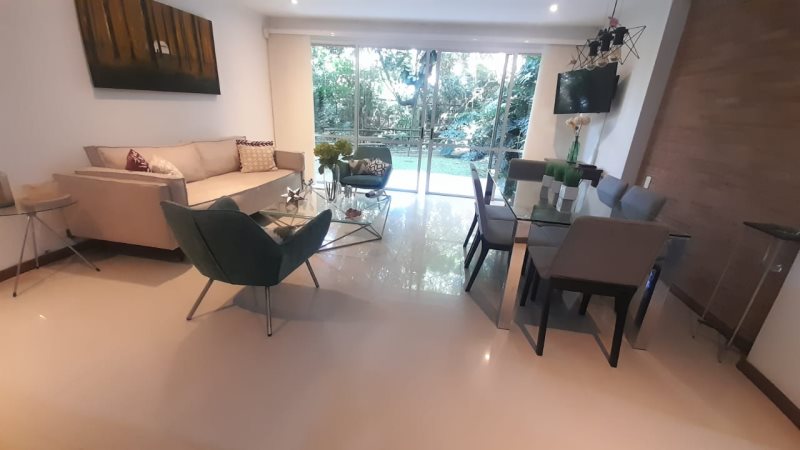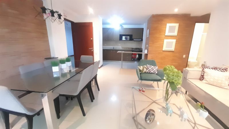 Apartamento Amoblado para Arriendo en Envigado Sector Benedictinos, Area de 77 metros, 2 Alcobas la Principal con Baño y Vestier, 1 Baño Social con Ducha, Sala Comedor, Pisos en Porcelanato, Cocina Integral, Zona de Ropas, Terraza, Ascensor, Parqueadero de Visitantes.